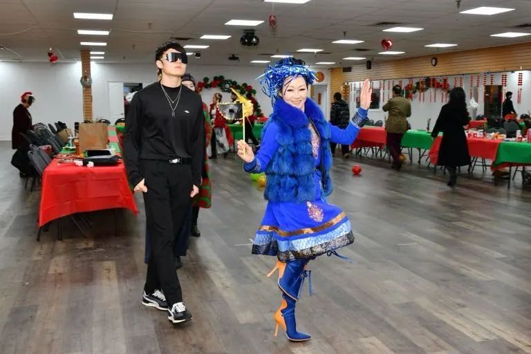 伴随着熟悉而欢快的旋律,全体嘉宾齐声合唱了经典圣诞歌曲《铃儿响叮当》(Jingle Bell)。悠扬的歌声在大厅中回荡,与窗外飘舞的雪花交相辉映,将人们带入了一个愉快而热烈的节日世界。紧接着,嘉宾们盛装亮相,在辛老师的带领下,大家纷纷戴上或手拿色彩缤纷的面具自信地在大厅里走秀,展示各自的节日风采与创意装扮,为舞会增添了无限的趣味与惊喜。