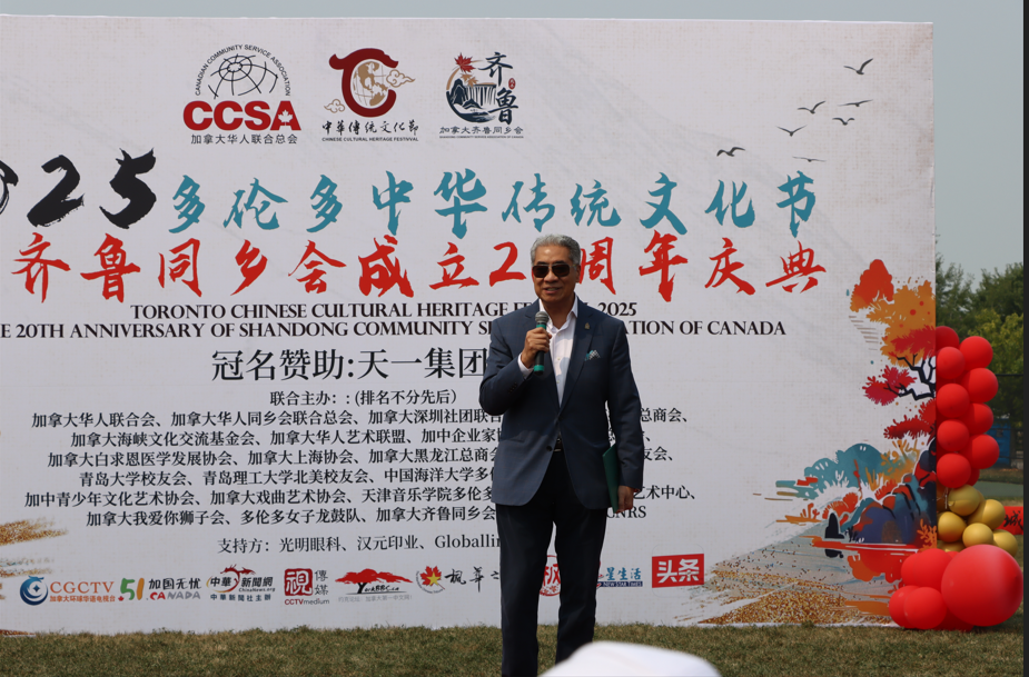 2025年8月3日星期日,由加拿大华人联合会与齐鲁同乡会发起,加拿大深圳社团联合总会联合主办的“2025多伦多中华传统文化节 暨齐鲁同乡会成立20周年庆典”在万锦市Wismer Park隆重举行。活动当天,晴空万里,阳光明媚。来自温哥华、多伦多、蒙特利尔三地的华人社团代表齐聚一堂,共襄盛举。本次活动由三地共计68个社团联合主办,是近年来规模最大的华人社团联动盛会之一。现场气氛热烈,喜气洋洋,展现了中华文化的独特魅力和华人社区的凝聚力。